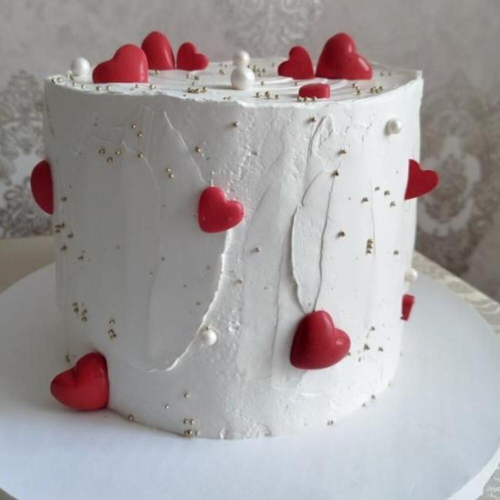 Рассчитан на 10 _12 человек. Торт Сердечная гармония это идеальный способ выразить свои чувства и добавить романтики в любое торжество. Белоснежный кремовый торт, украшенный красными сердечками и изящными золотыми акцентами, выглядит невероятно стильно и элегантно. Этот торт станет великолепным украшением праздничного стола на день Святого Валентина, годовщину или любой другой особый случай, когда хочется сказать Я люблю тебя без слов.