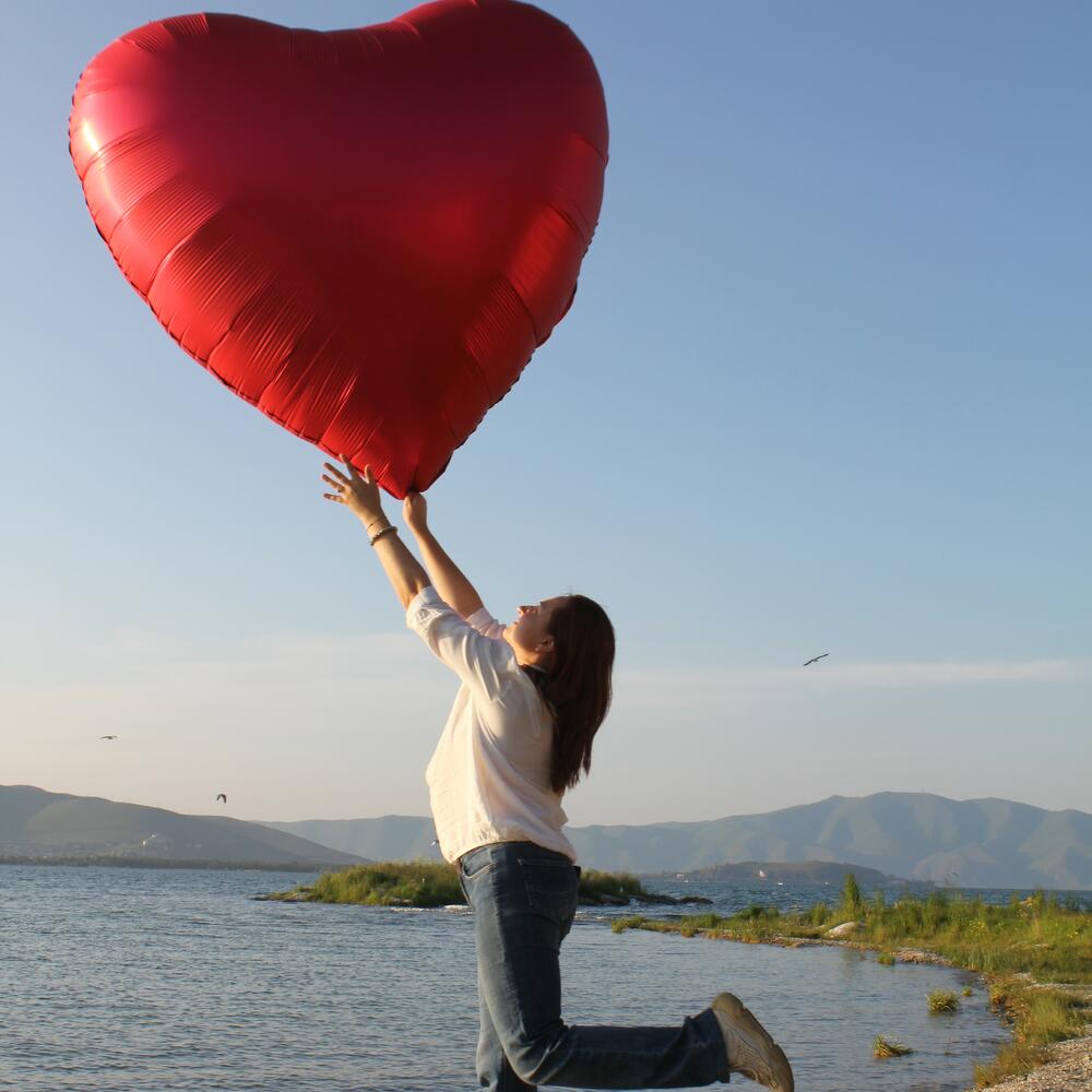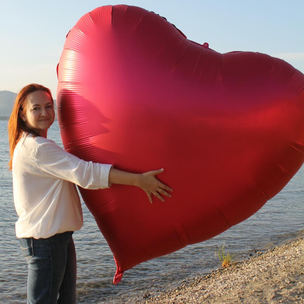 Гигантский шар в виде сердца - ростом с человека (173 см, в надутом состоянии 135 см)! Новинка! Это самый большой фольгированный шар из существующих на рынке аэродизайна! Шар надут гелием, что позволяет ему летать длительный период. Шар имеет сатиновое покрытие, очень приятное на ощупь и радующее глаз! Если хотите удивить девушку - Вам точно нужен этот красавчик! На шар можно нанести памятные фотографии или добавить надпись: Выходи за меня, Будь моей женой, Marry me, Люблю тебя, Ты моя жизнь, 1+1=3, С днем рождения, дорогая и прочее. Отлично подойдет, как для девушки, так и ребенка. Это подарок с ВАУ эффектом!