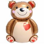 Мишка с сердцем, надутый гелием. Отлично подойдёт на день святого Валентина, а также на день рождения. Гарантированный срок полета около месяца, затем шар можно повторно надуть. Дополнить композицию можно шарами - сердечками.