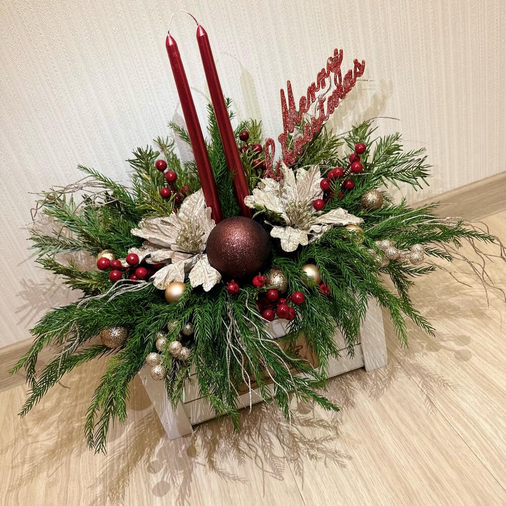 Dekorativ çiçəklər Taxta qutu Tis Milad oyuncaqları Şamlarkortiv bəzək