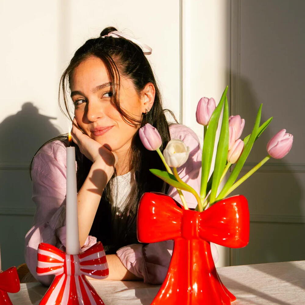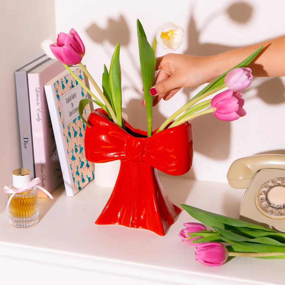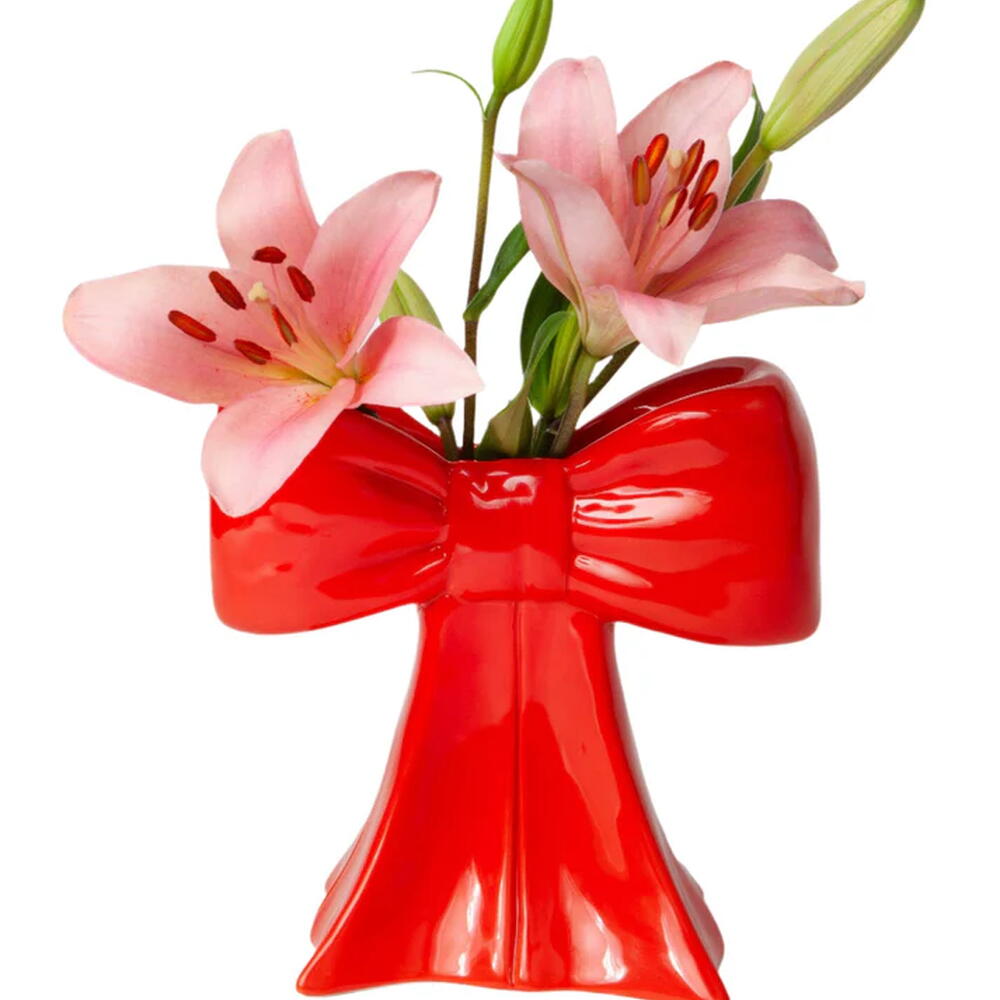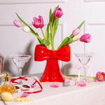 Ceramic vase shaped as a bow, taking inspiration from the ethereal ballet world and the whimsical allure of coquetry. Vaza mašna - poklon i dekoracija poznatog španskog brenda DOIY. Dimenzije: 20 x 19 x 11 cm, 0,95 kg Boja: crvena Nega: Prebriši vlažnom krpom Materijal: Kamenina, Glazura u boji Brand: DOIY (Španija)