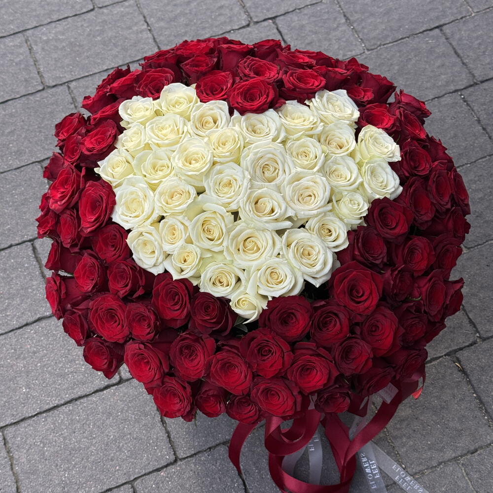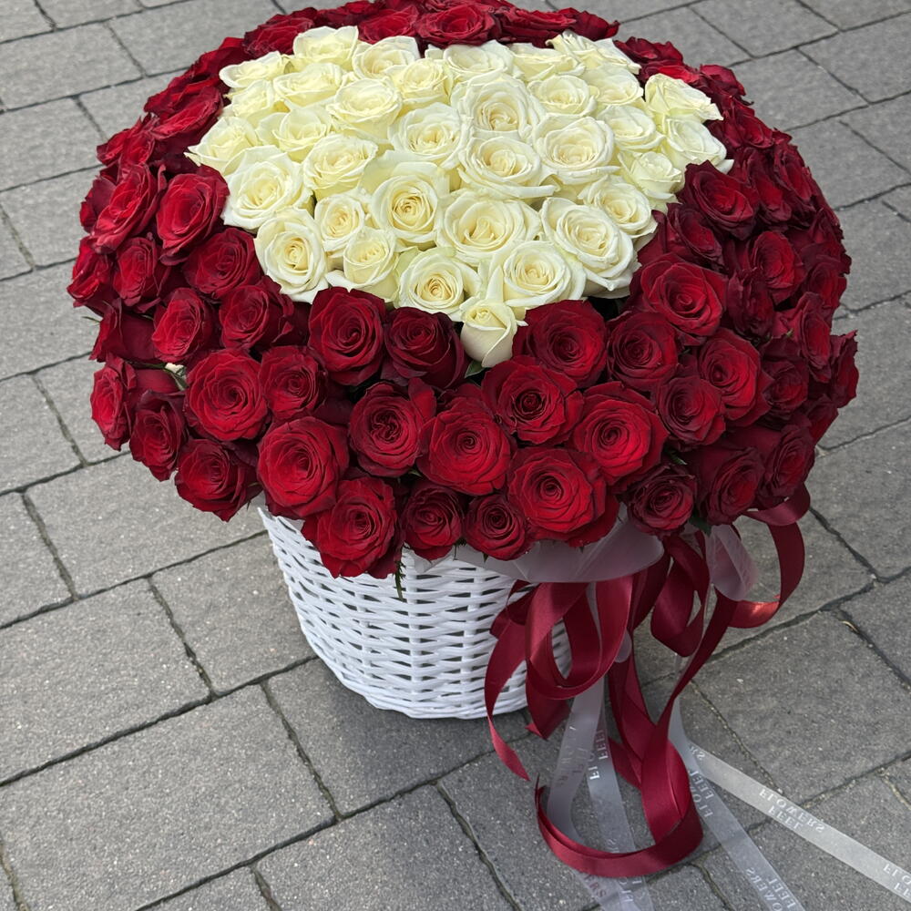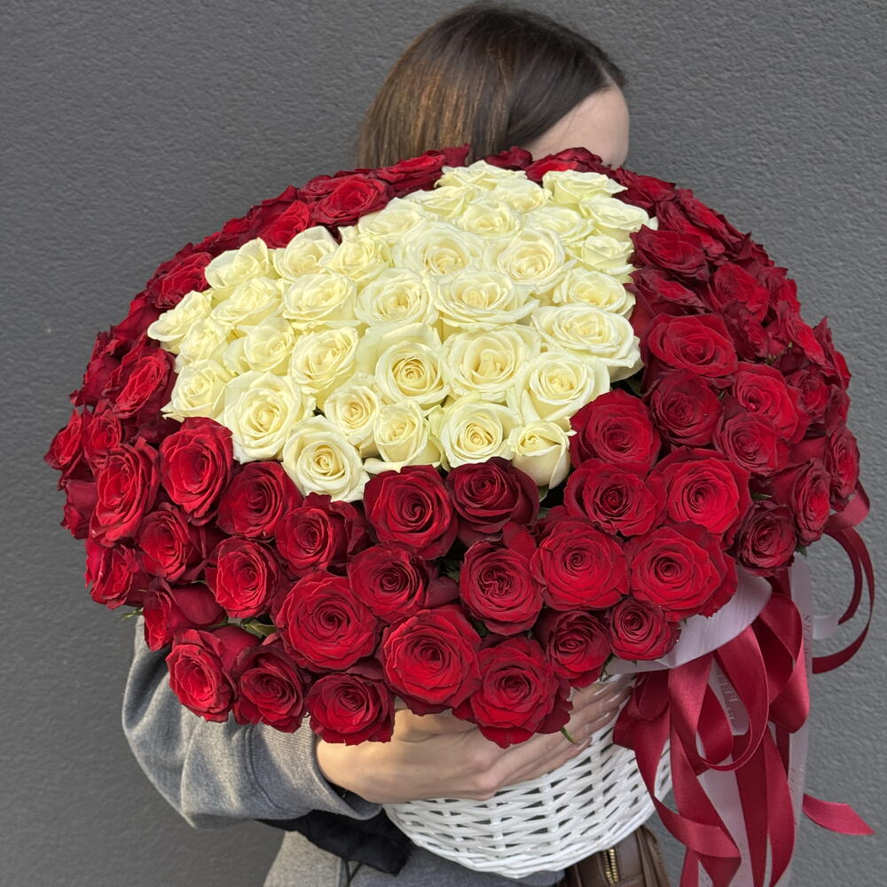 qırmızı gül - 76 ədəd ağ gül - 25 ədəd