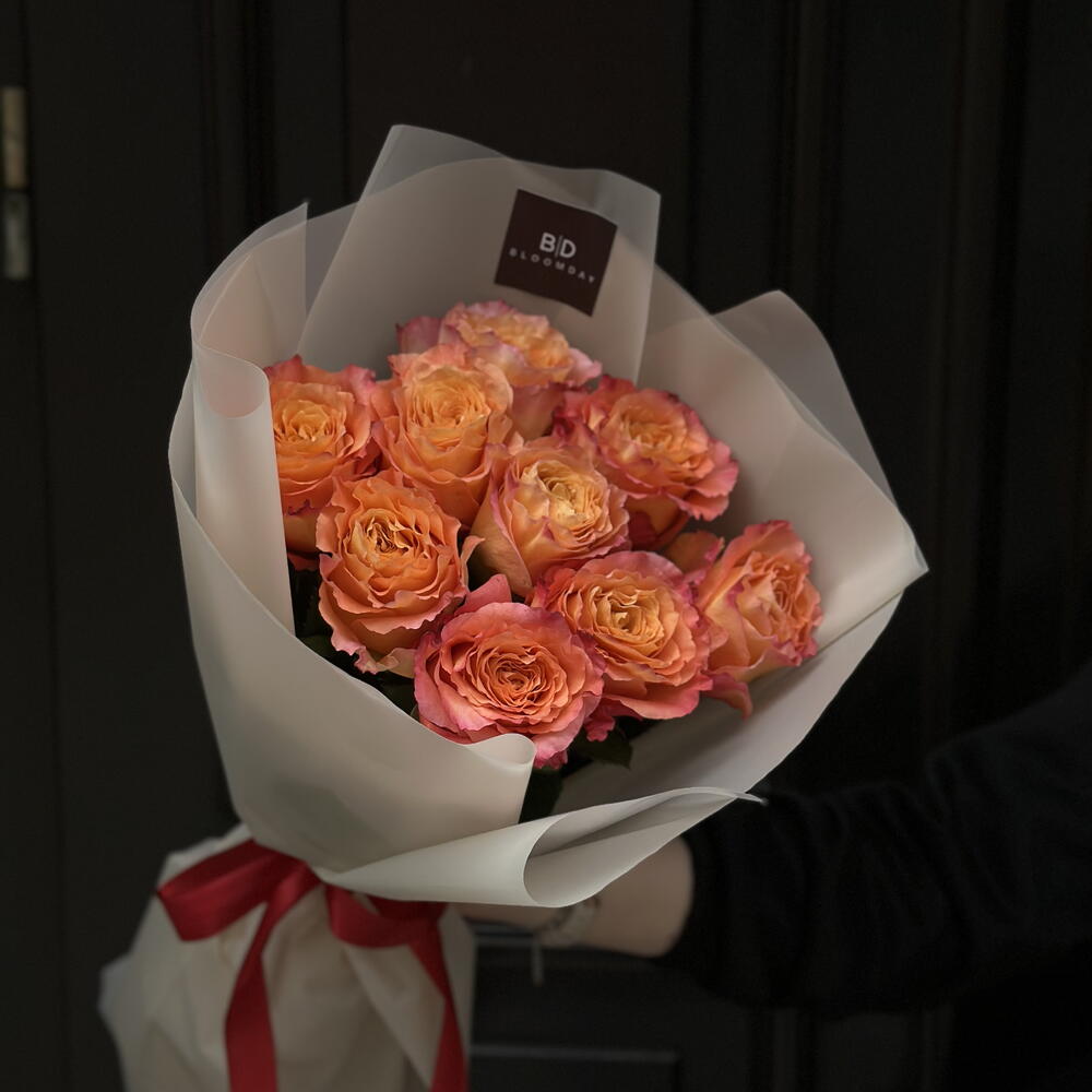 çiçəkçi kağızından qablaşdırma - 1 ədəd pomarańczowa róże - 9 ədəd