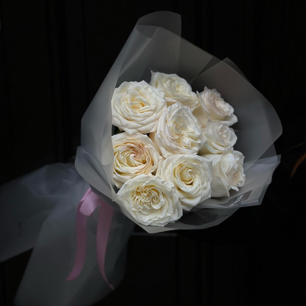 Bukiet z 9 białych róż - (50-60cm) Zamów stylowy bukiet z czerwonymi różami. W skład bukietu wchodzą rozy najwyższej jakości sprowadzone z Kolumbii/Ekwadoru