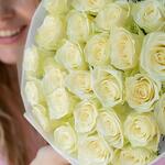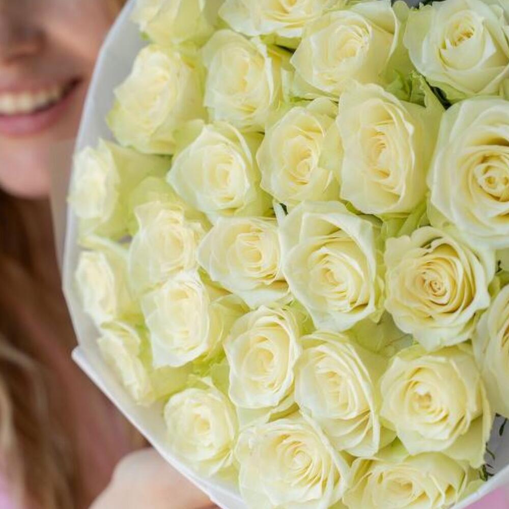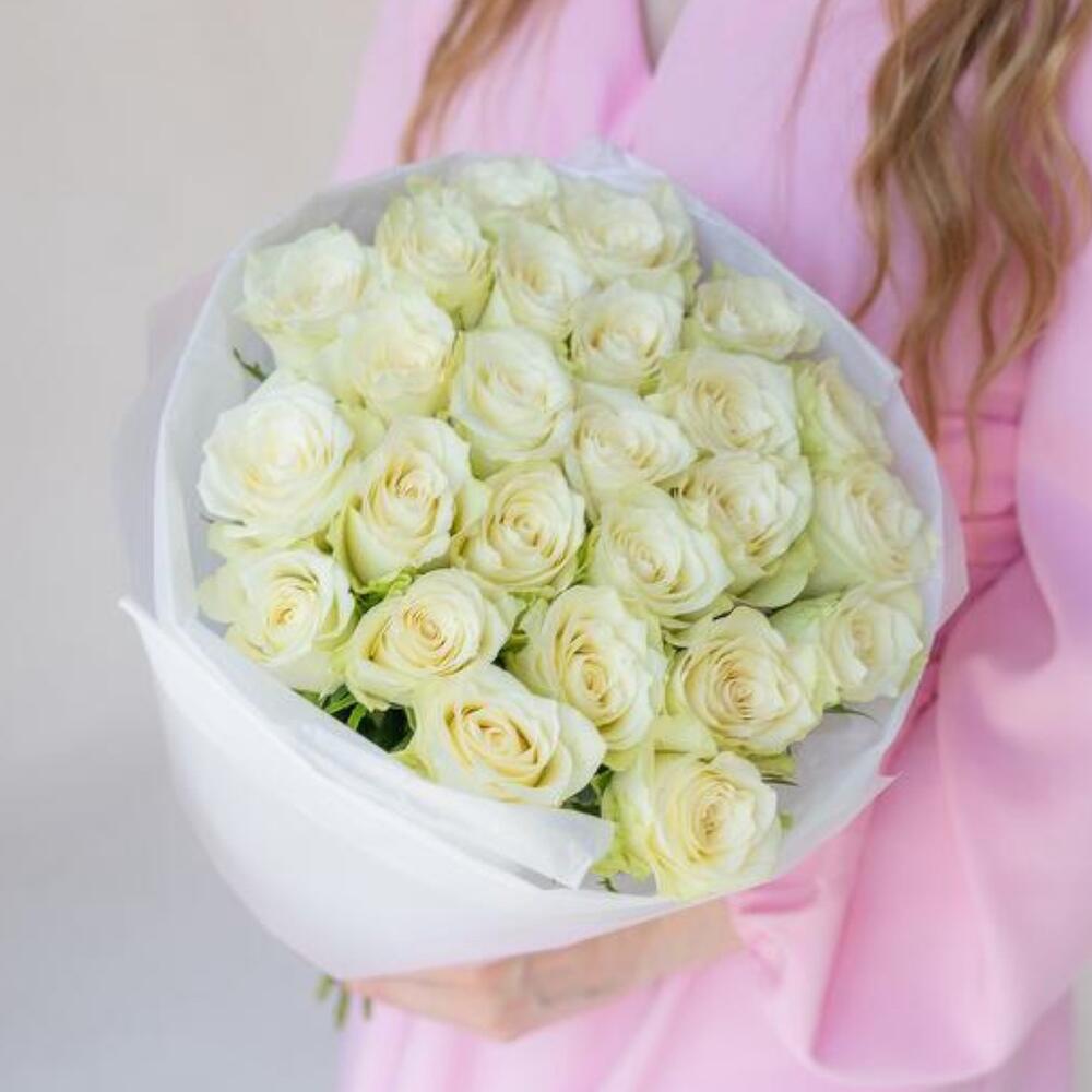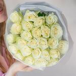 Этот великолепный монобукет из 25 изысканных белых роз прекрасно подойдет в качестве подарка для любого торжественного события. Букет мастерски оформлен в дизайнерскую упаковку, которая подчеркивает нежности и элегантности роз. Завершающим штрихом является атласная лента, придающая букету особенную изысканность и шарм.