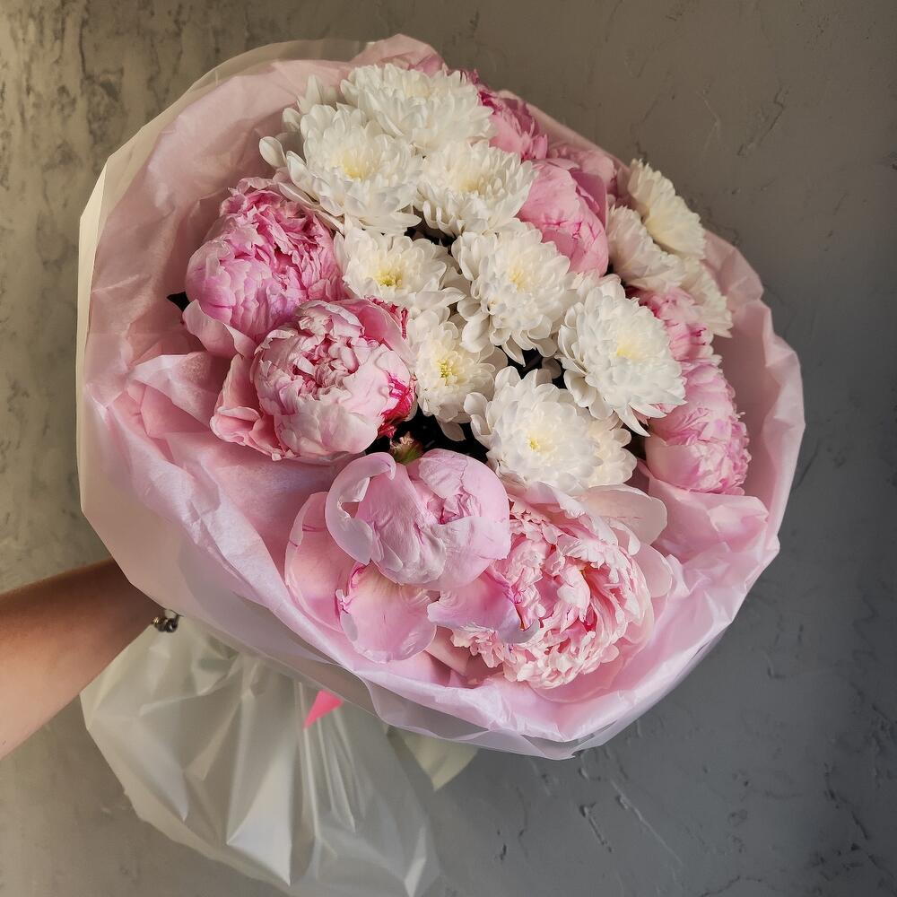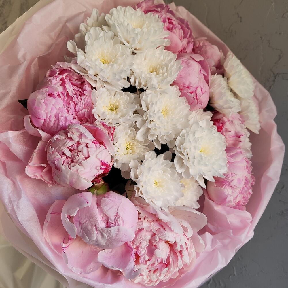 Букет «Пионовый рай» ( пионы, хризантема кустовая)