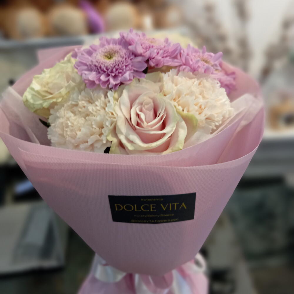 Kolorystyka bukietu i opakowania może delikatnie się różnić