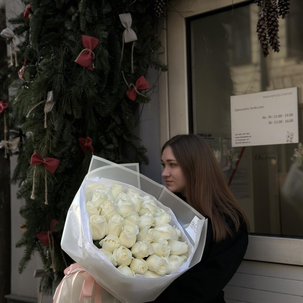 ağ gül - 35 ədəd çiçəkçi kağızından qablaşdırma - 1 ədəd