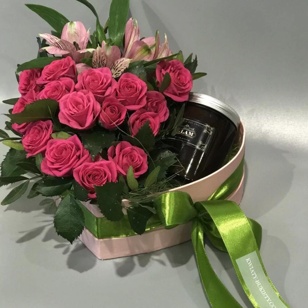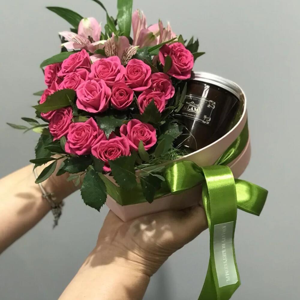 Göstərilən qiymət 7-9 güldən ibarət kiçik buket üçün nəzərdə tutulub, lakin biz 7-dən 19-a qədər müxtəlif ölçülərdə buketlər yarada bilərik. Alıcıya həsr olunmuş fərdi qeyd əlavə edilə bilər. Tərkibi: ürək formalı qutu, təzə çiçəklər, əl işi ətirli soya şamı, yaşıllıq, lent