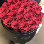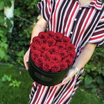 Okazała miłość Jesteś fanem eleganckich prezentów, a zwykłe kwiaty nie są wystarczająco wytworne? Polecamy wieczne róże, które są absolutną nowością na rynku! Są to kwiaty żywe, które zachowują swój kolor i kształt przez minimum 2 lata. Czerwone róże w czarnym flowerboxie zdecydowanie urzekną kobietę, która kocha klasyczne kompozycje i romantyczne niespodzianki. Możesz mieć pewność, że ten stylowy zestaw będzie olśniewał zdecydowanie dłużej niż tradycyjny bukiet. Czerwone róże oznaczają miłość, zaufanie, piękno, odwagę. A co więcej zawsze będą najpiękniejszym sposobem na powiedzenie „kocham cię”. Ilość róż: W boxie mieści się około 21 szt. róż Średnica pudełka: Ø 25 cm Flowerbox dostarczany jest z wieczkiem. Używamy jednej z najlepszych odmian róż wiecznych dostępnych na świecie.
