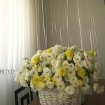 Роза одноголовая - 20 ədəd Eustoma - 61 ədəd Səbət hörmə - 1 ədəd Георгина - 20 ədəd Тишью белое - 3 ədəd Пленка дизайнерская - 1 ədəd биофлор - 2 ədəd
