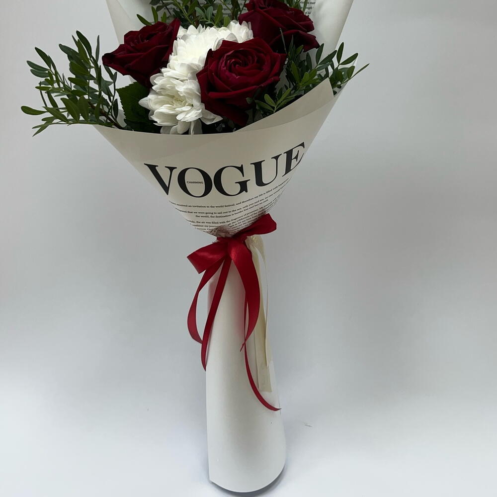xrizantema - 1 ədəd grenery - 2 ədəd red roses - 3 ədəd