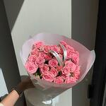 Mono bouquet of pink spray roses in size S. The bouquet is wrapped in white paper with a satin ribbon. What you get: • A detailed care guide to help your flowers last longer • Flower food to preserve freshness up to 5-7 days • A gift bag for safe delivery It is perfect as an addition to the main gift for a girl of any age. Any lady will be happy to receive such a bouquet. The shade of the flowers may vary depending on the season.