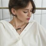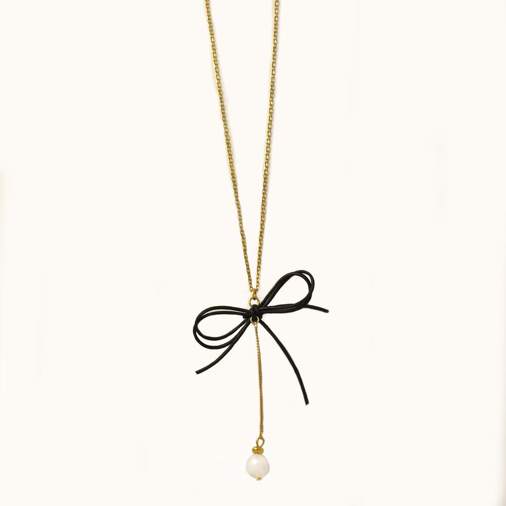 Нежный кулон из в виде банта из натуральной кожи, украшенный каплей натурального речного жемчуга. Длина цепочки: 45 см + 4 см - цепочка удлинитель.