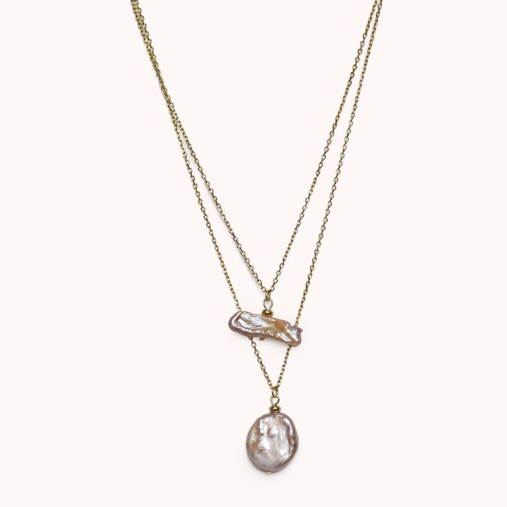 Двойное колье с натуральным жемчугом Кеши и Бива