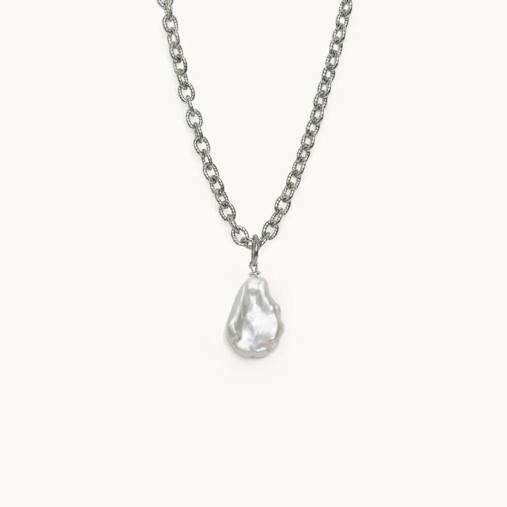 Цепочка и кулон из нержавеющей стали из натурального жемчуга кеши премиум-класса. размер жемчуга: 22-24 мм.