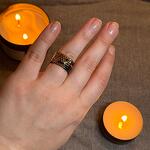 The ring is handmade from high-quality beads. It attracts attention, but it remains an unobtrusive, delicate accent in your image. The inner circumference is 54 mm
