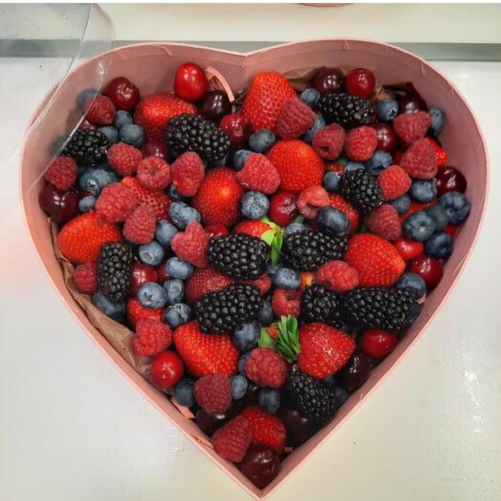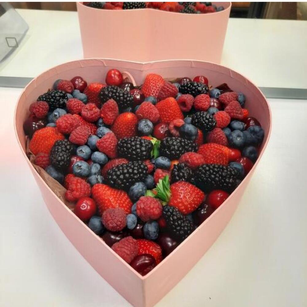 Клубника - 350 qr. Малина - 150 qr. Ежевика - 150 ədəd Голубика - 150 ədəd Черешня - 200 ədəd коробка шляпная сердце - 1 ədəd
