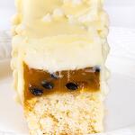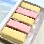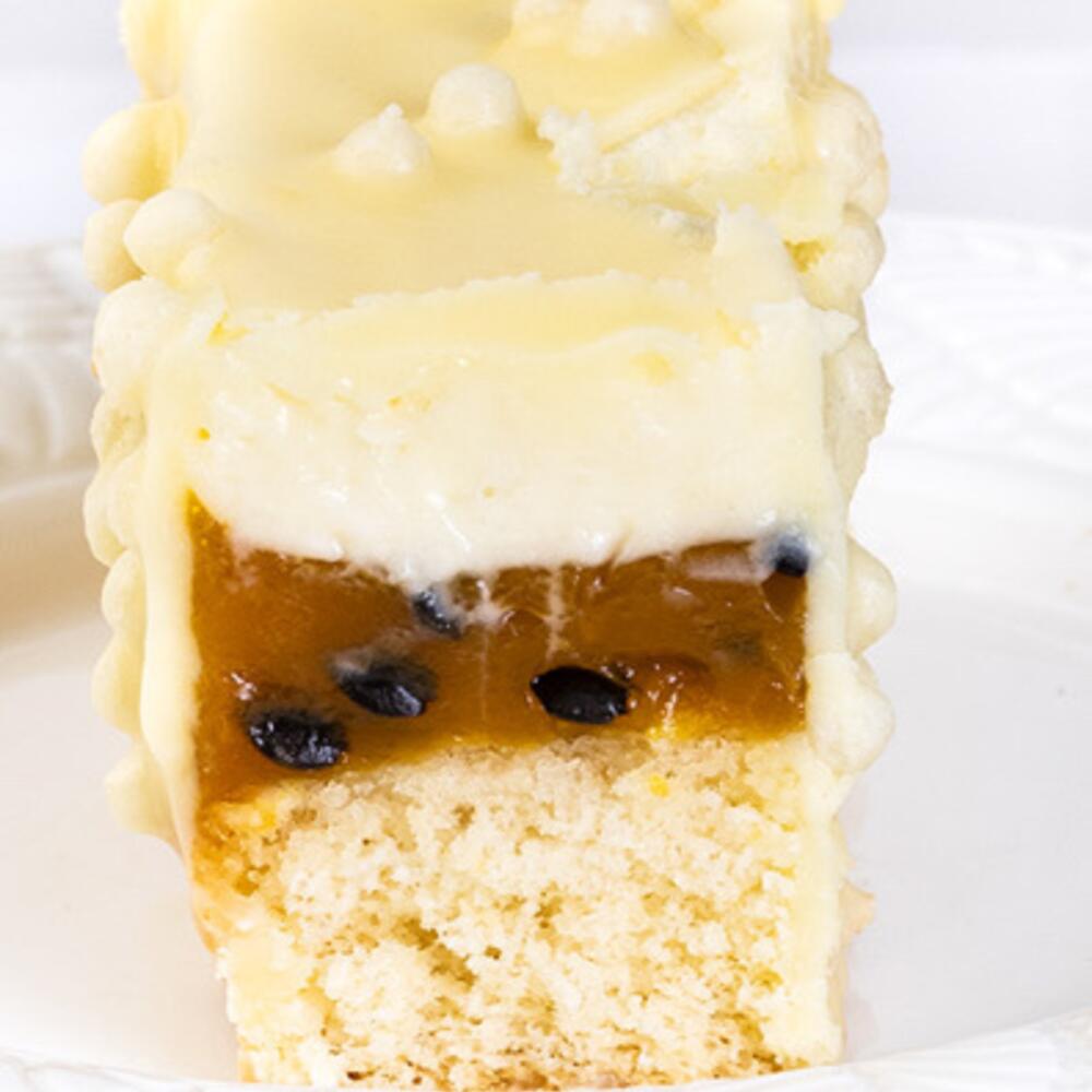 клубничное пюре, пюре манго и маракуйи, кокосовая стружка, сливки 33%, сахар, яйца, пшеничная мука, сливочное масло, белый шоколад, ваниль, разрыхлитель.