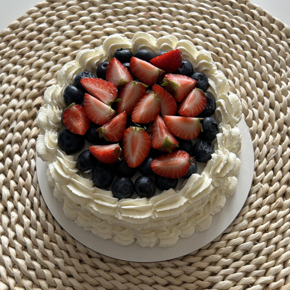 Farinha, ovo, manteiga, frutas vermelhas frescas, queijo cremoso, açúcar, sal, kefir, creme de leite, fermento em pó. frutas vermelhas frescas mirtilos framboesas e morangos