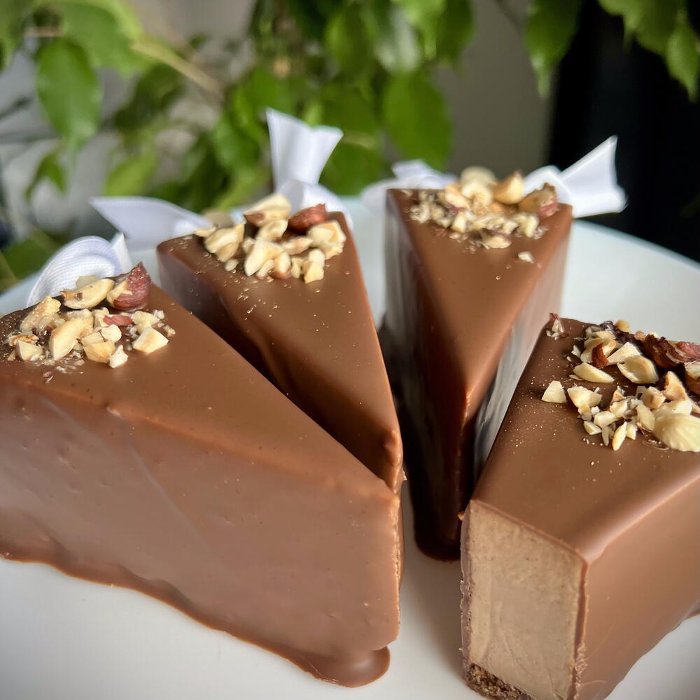Delicioso cheesecake de chocolate com base crocante e quebradiça e mousse delicado de avelãs. Três camadas de delícias: cobertura de chocolate ao leite, mousse aerado de avelãs e delicada base de queijo. Ideal para verdadeiros apreciadores de sobremesas de chocolate. Conjunto com 5 unidades.