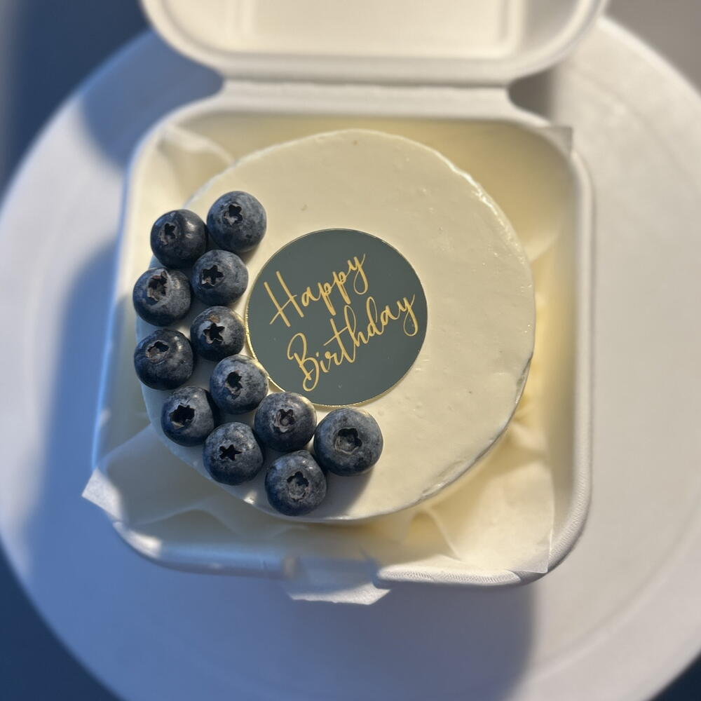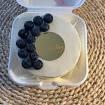 Queijo cremoso, frutas frescas (recheio à escolha: manga, mirtilo, morango, cereja), farinha, ovo, açúcar, sal, óleo vegetal. Pão-de-ló de baunilha ou chocolate