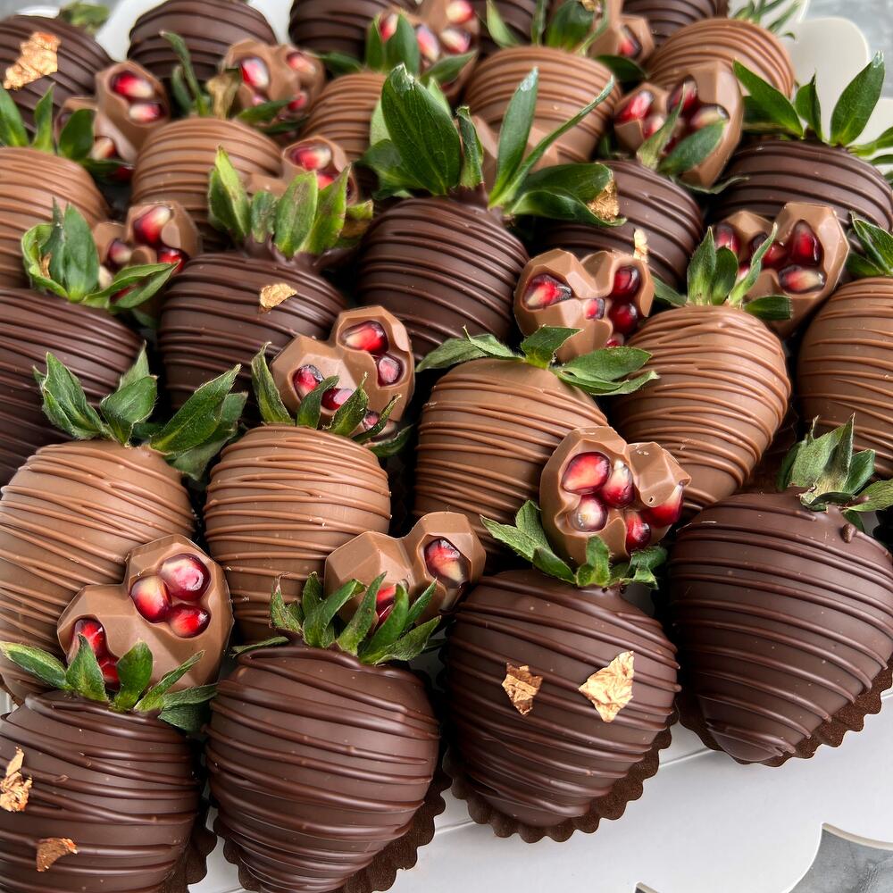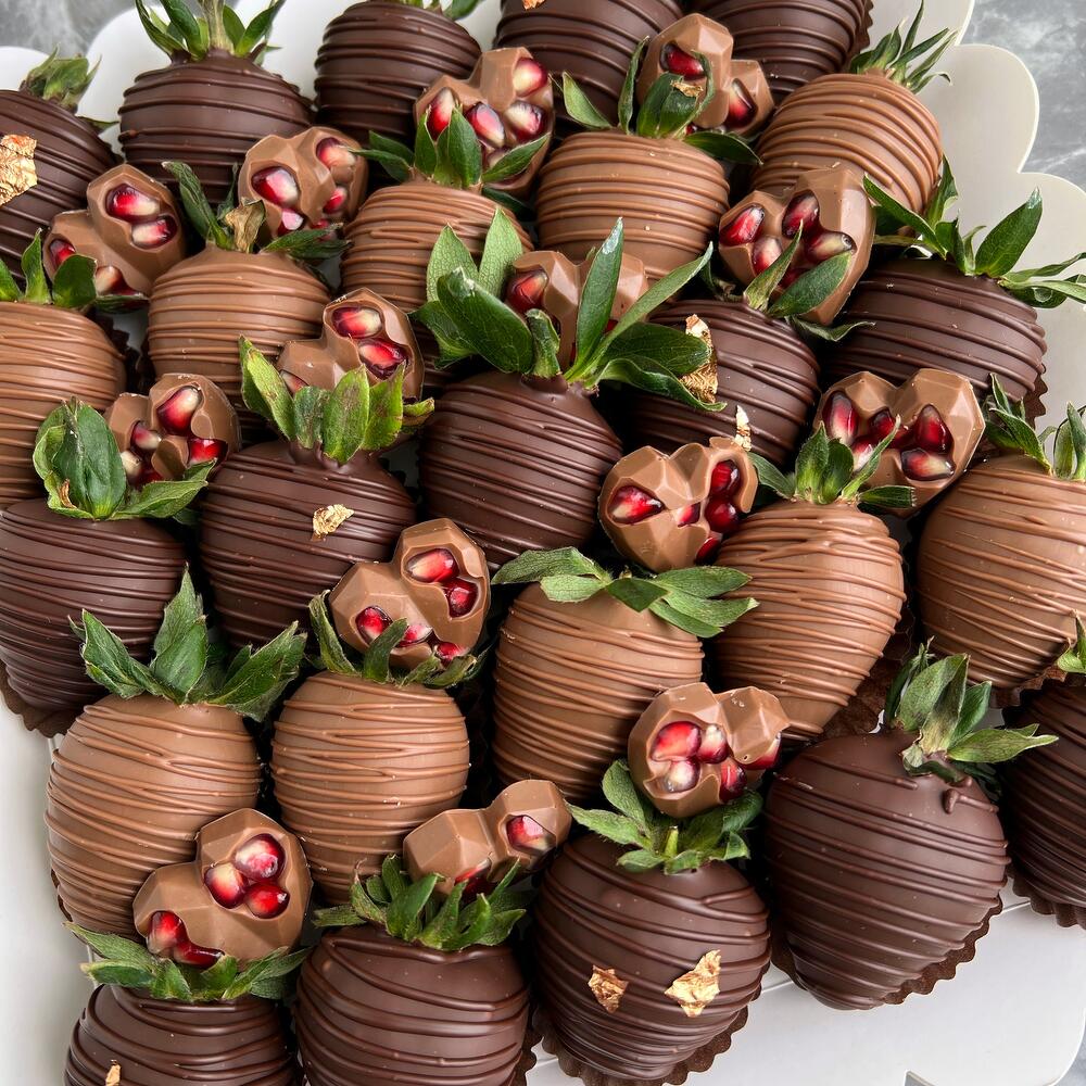 Chocolate covered strawberries + chocolate covered pomegranate 22*22 cm