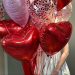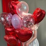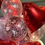 В составе сета 9 фольгированных Шаров (5 красных, 2 розовых матовых и 2 розовый металлик) 6 шаров с конфетти (2 розовых пудровых, 2 розовый кружочки и 2 красных кружочки)