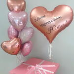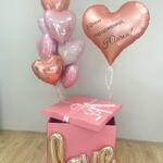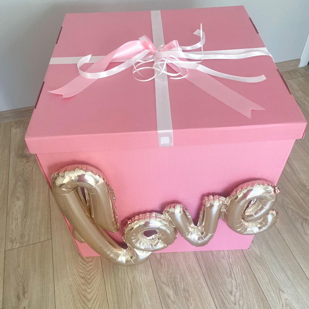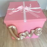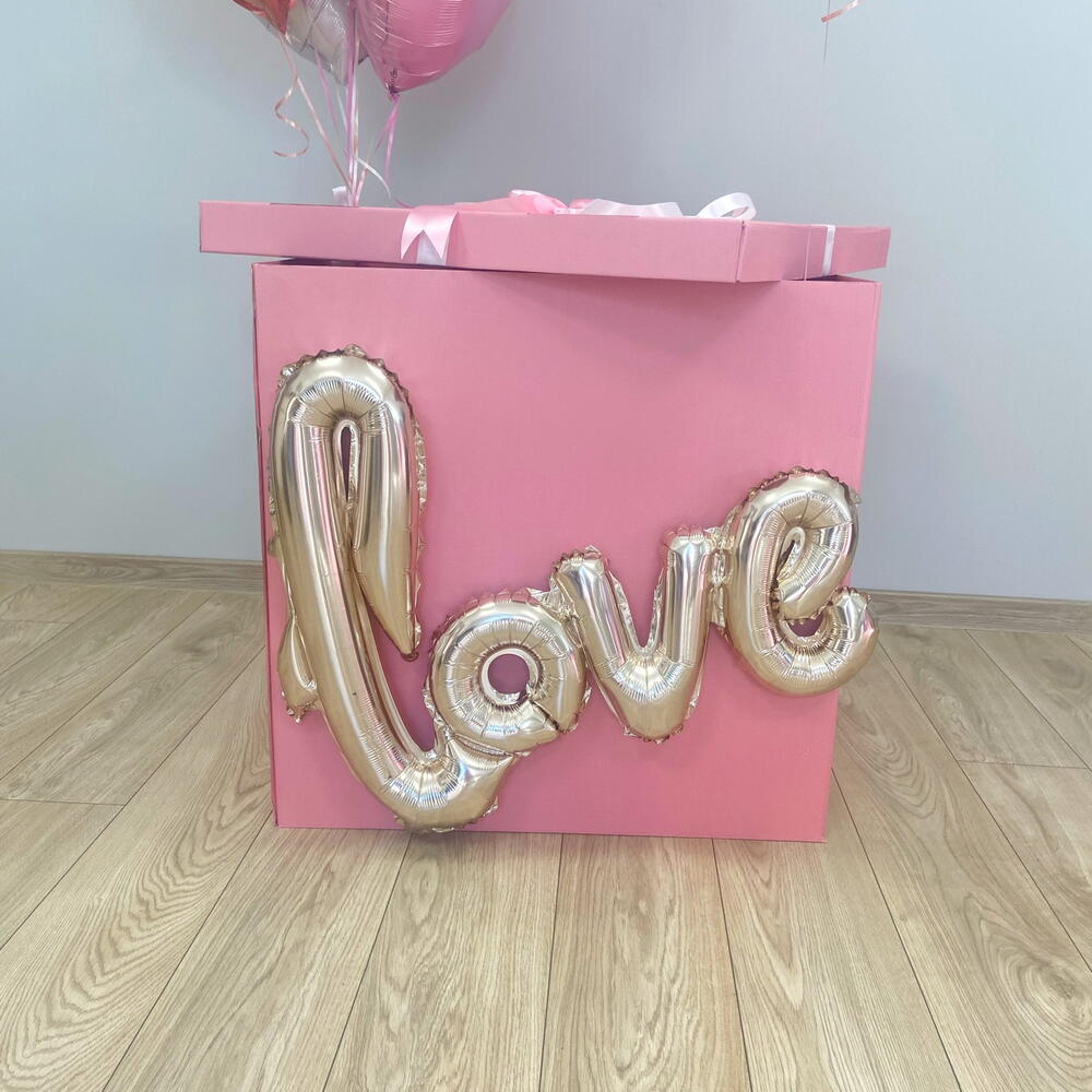 No conjunto: 🩷caixa grande de balões (70x70 cm) com a inscrição LOVE 🩷10 corações metalizados 🩷grande coração metalizado com inscrição personalizada (ao fazer o pedido, escreva no comentário qual inscrição deve estar no balão) 🩷fitas combinando com o conjunto 🩷pesos para balões