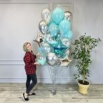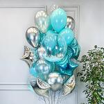 Состав набора / (состав композиции): Фонтан на грузике: -латексный шар тиффани 30 см - 9 шт; -шар металлик серебро 30 см - 4 шт; -шар хром серебро 30 см - 5 шт; -шар браш тиффани 30 см - 2 шт; -фольгированная звезда 46 см серебро - 3 шт; -фольгированная звезда 46 см тиффани - 2 шт; -шар баблс 60 см + перья тиффани - 1 шт.