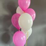 4 balões rosa + 3 balões brancos. Todos os tipos de balões estão disponíveis. Você pode encomendar qualquer configuração de balões combinando por telefone com o nosso administrador.