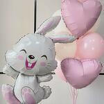 Нежная композиция из фольгированных и латексных шаров, которая подойдет, как взрослому, так и малышу. В состав композиции входят шары: - большой фольгированный шар в виде белого зайца (83см), надутый гелием; - летающие латексные шары в розовых оттенках (8 штук); - фольгированные шары в виде сердец пудровых оттенков (2 штуки). При желании мы можем добавить индивидуальную надпись на фольгированные шары, например: Любим тебя, С днем рождения, дорогая, Нашей зайке и пр. Все шары мы обрабатываем специальной жидкостью для увеличения полета. Средний срок полета шаров от 3х дней и более.