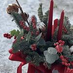 Pinha Eucalipto Fita de cetim Ramos de árvore de Natal Korbka Lã decorativa Velas de fita Lingonberry decorativo