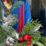 A fir arrangement in a wooden box with candles and decorations. An excellent option as a gift or as holiday home décor. The needles do not shed. The arrangement is long-lasting and will bring joy at home for a long time. The candles can be replaced with new ones once they burn down.