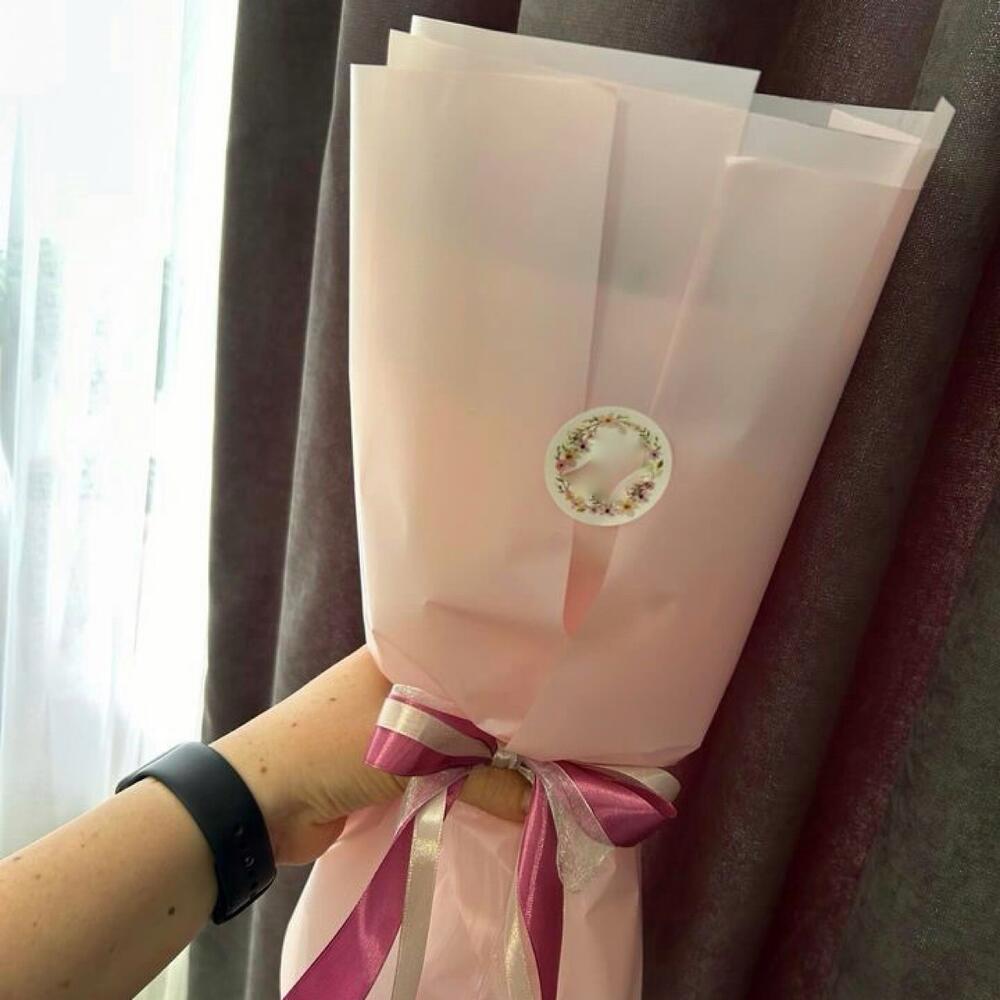 Цветы отличные, даже лучше (пышнее), чем на фото в карточке товара :) Упаковано на совесть: несколько слоёв бумаги (выглядит отлично), каждый слой, а также сами цветы замотаны незаметной белой ленточкой. Снаружи бант из двойной атласной ленты. Отлично выглядит :)