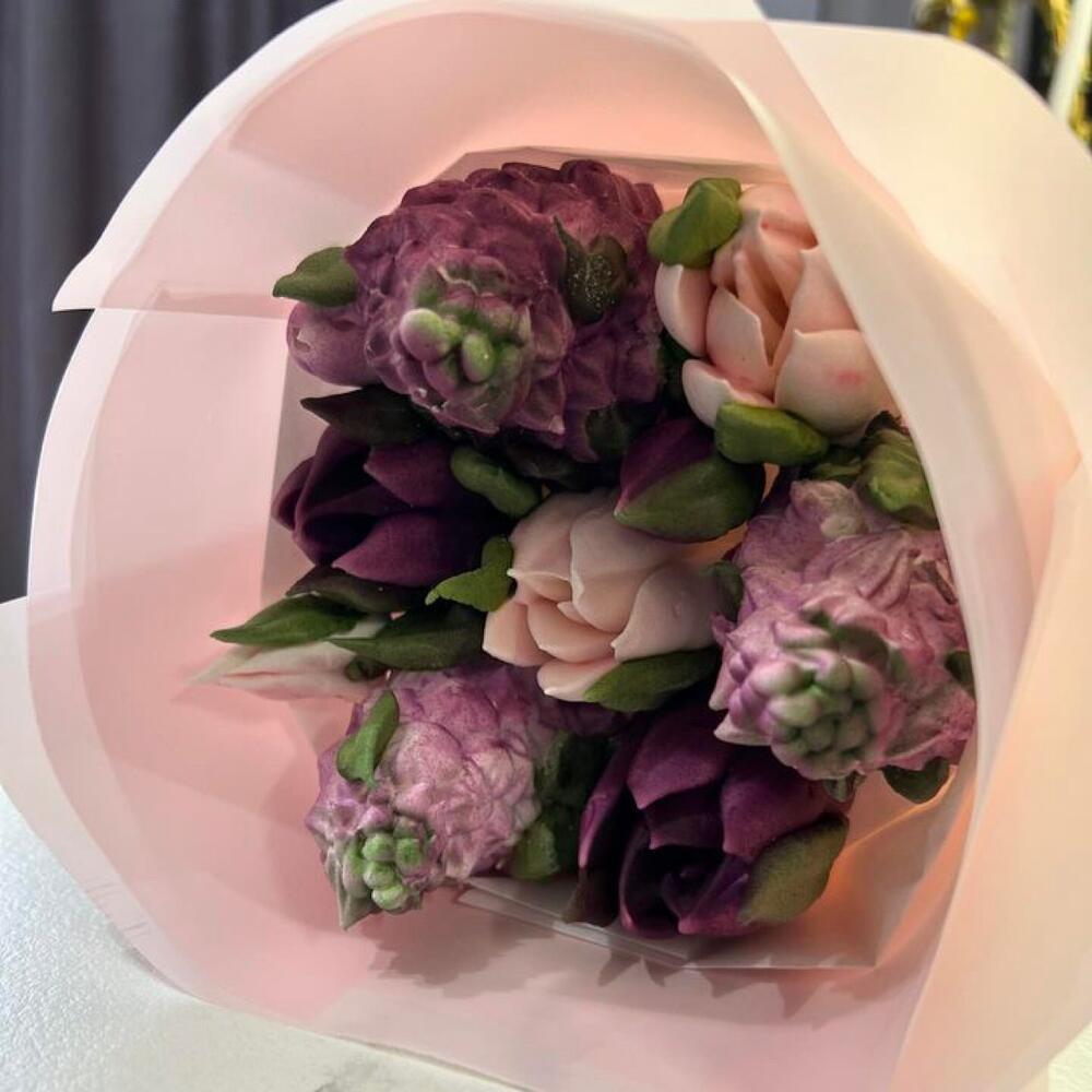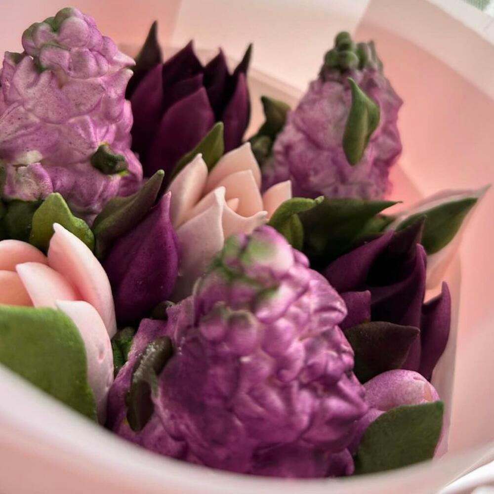 Букет из зефира, подарок Романтический букет из тюльпанов и маттиолы