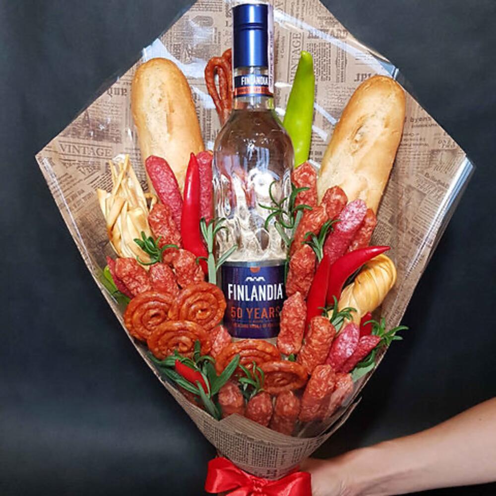 pimentão vermelho - 3 un. queijo Pigtail fumado - 2 un. pimenta verde picante - 2 un. pão baguete - 2 un. охотничьи колбаски мини - 20 un. кнакер круглый - 5 un. finlandia 0.5l - 1 un.