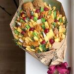 Необычный и элегантный гастрономический букет, в котором сочетаются натуральные вкусы и изысканный стиль. Композиция собрана из аппетитных сыров разных сортов, от нежных сливочных до пикантных.Такой букет — это не просто подарок, а настоящее гастрономическое произведение искусства, которое принесёт радость и эстетическое наслаждение каждому гурману.