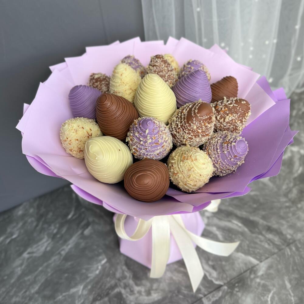 Bouquet of 19 berries in white and milk chocolate