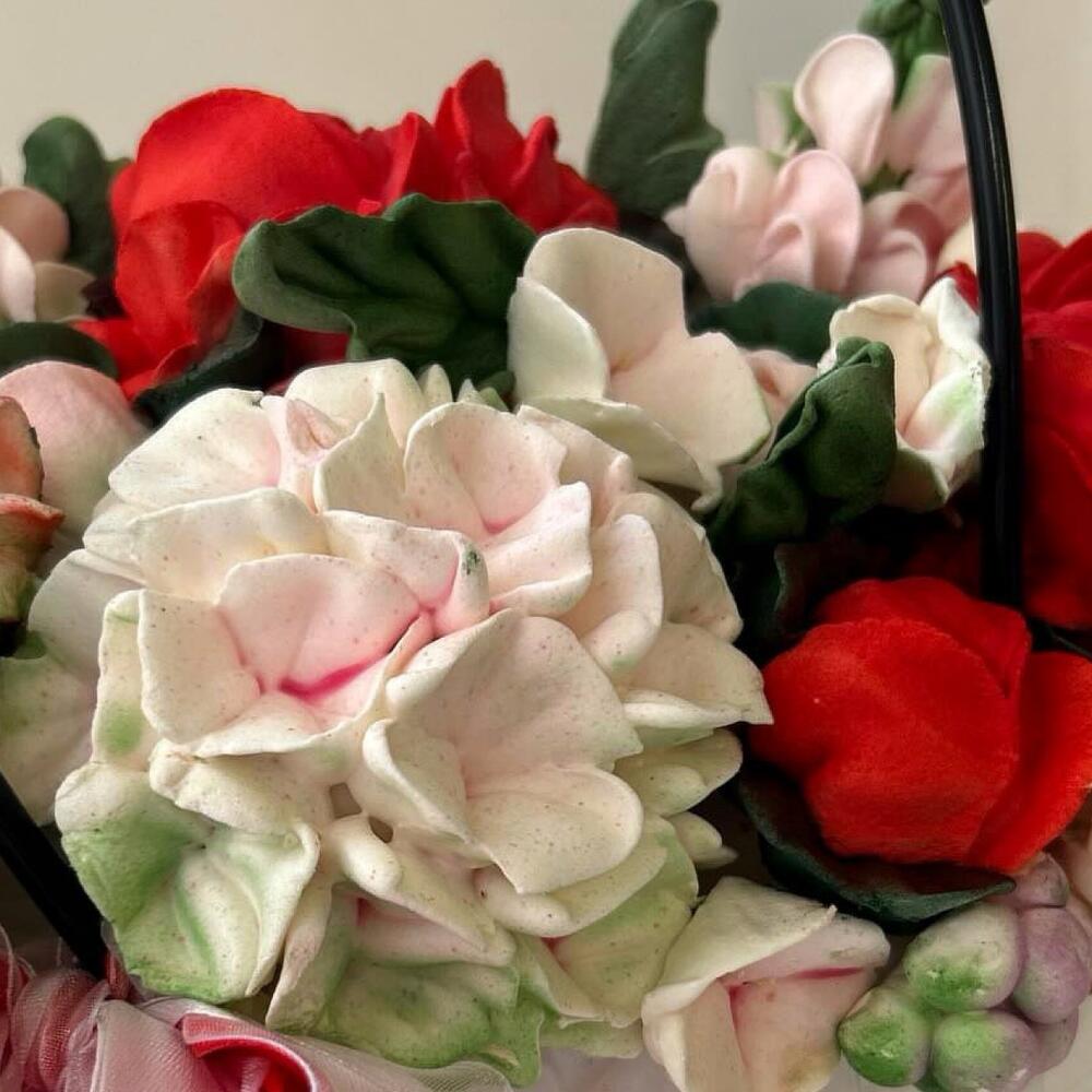 зелень зефирная - 5 un. пион зефирный - 3 un. роза зефирная - 3 un. гортензия зефирная - 3 un. мини цветы зефирные - 9 un.