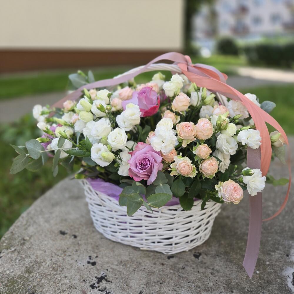 Eucalipto - 5 un. Lisianthus - 8 un. carnation - 9 un. rosas - 9 un. rosas spray - 9 un.