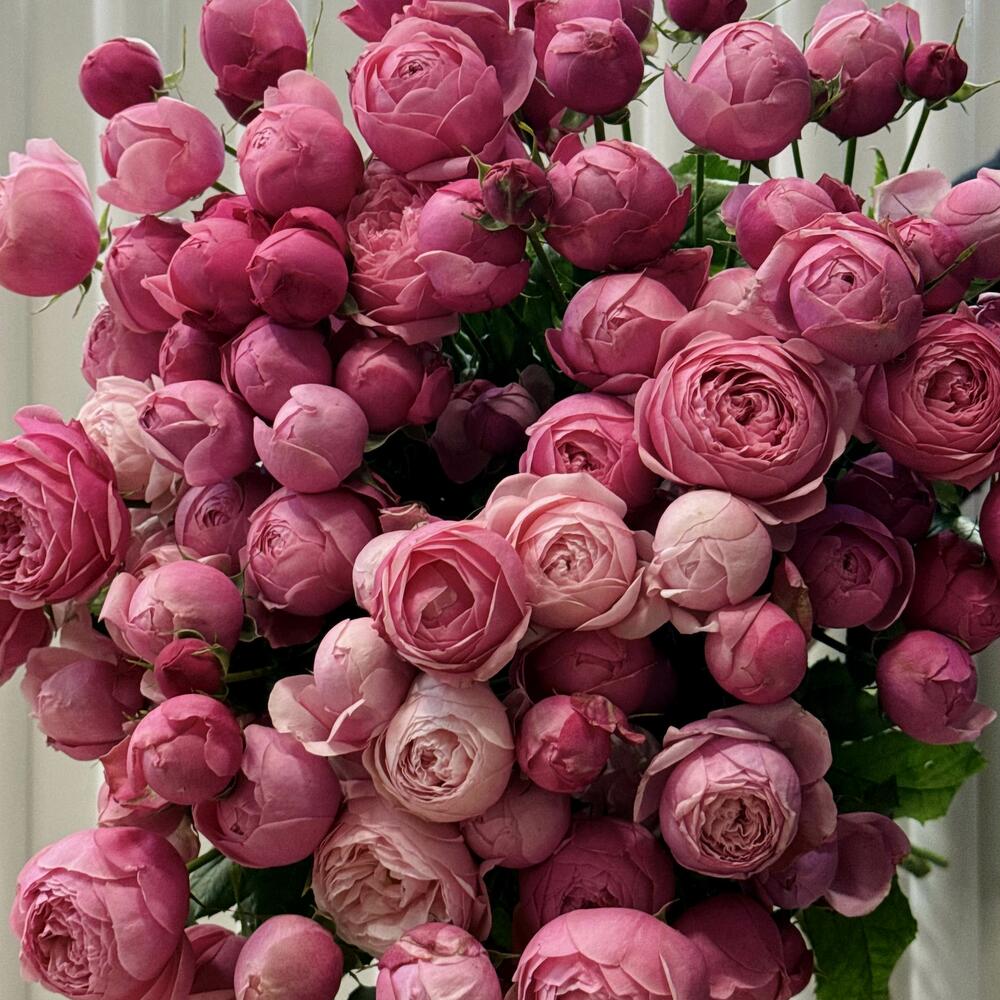 Яркий букет из пионовидных кустовых роз отличается хорошей устойчивостью и обладает насыщенным ароматом, что добавляет ценность для любителей цветов.