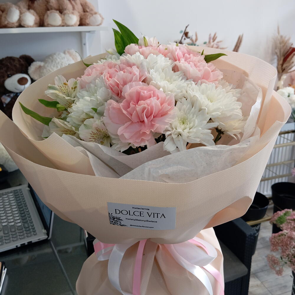 Kolorystyka bukietu i opakowania może delikatnie się różnić