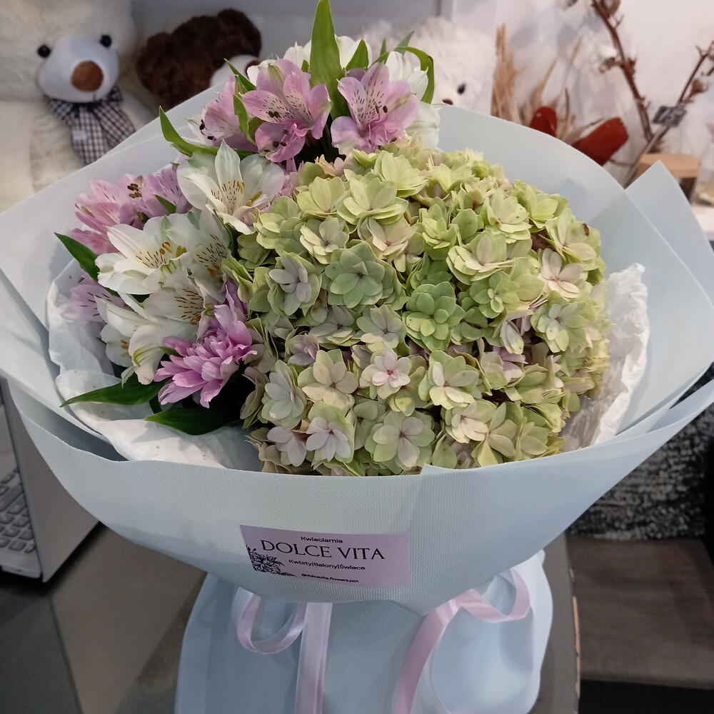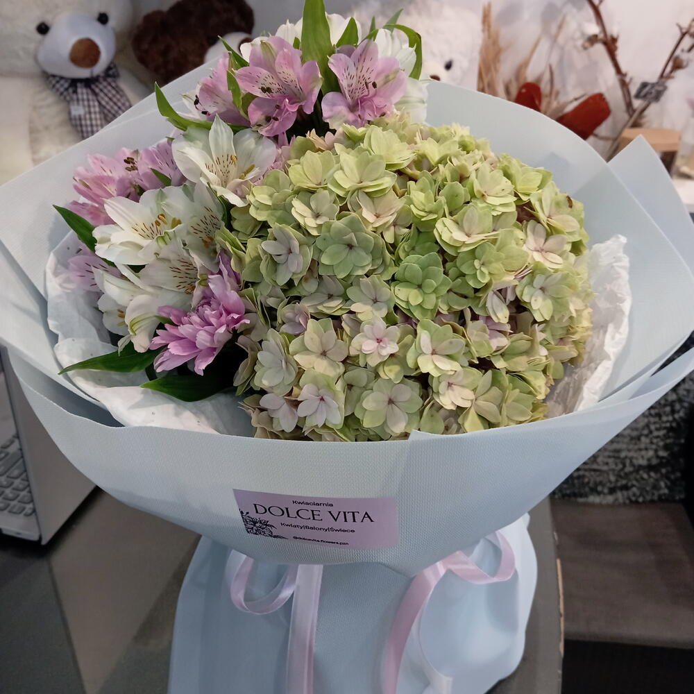 alstroemeria mix - 5 un. crisântemo - 1 un. hortênsia - 1 un.