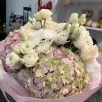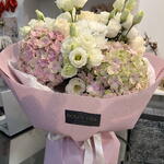 Eustoma - 3 un. rosa - 4 un. hortênsia - 2 un. crisântemo - 2 un.