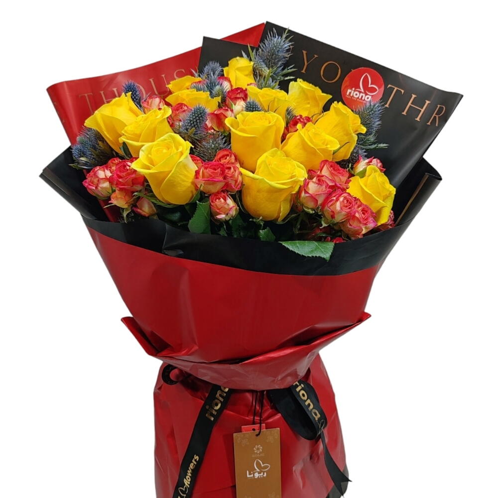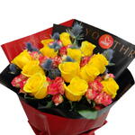Ruscus - 5 un. yello rose - 15 un. red white spray rose - 10 un.