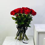 25 Stems of premium red roses hand bouquet tied with ribbon.