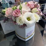 Eustoma - 3 un. rosa - 1 un. folhagem decorativa - 5 un.