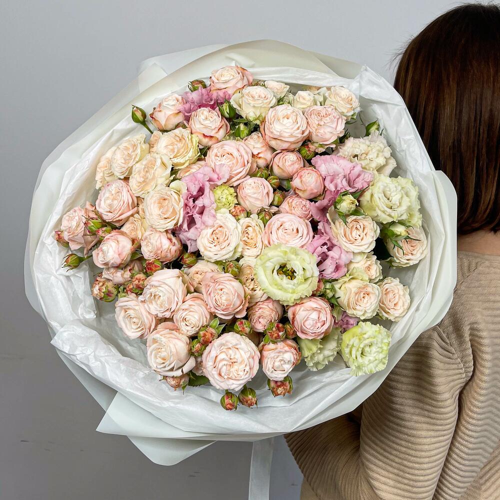 Delicado buquê de rosas em spray e eustoma