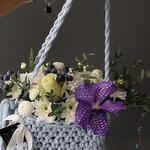 The combination of an orchid with a rose and a chrysanthemum in a hand-knitted womens purse makes this combination an ideal choice both for a romantic date and for any kind of celebration. Note: the bag may be in a different color depending on current availability. Note: The design of the bouquet can be changed to a similar one if the required material is not available